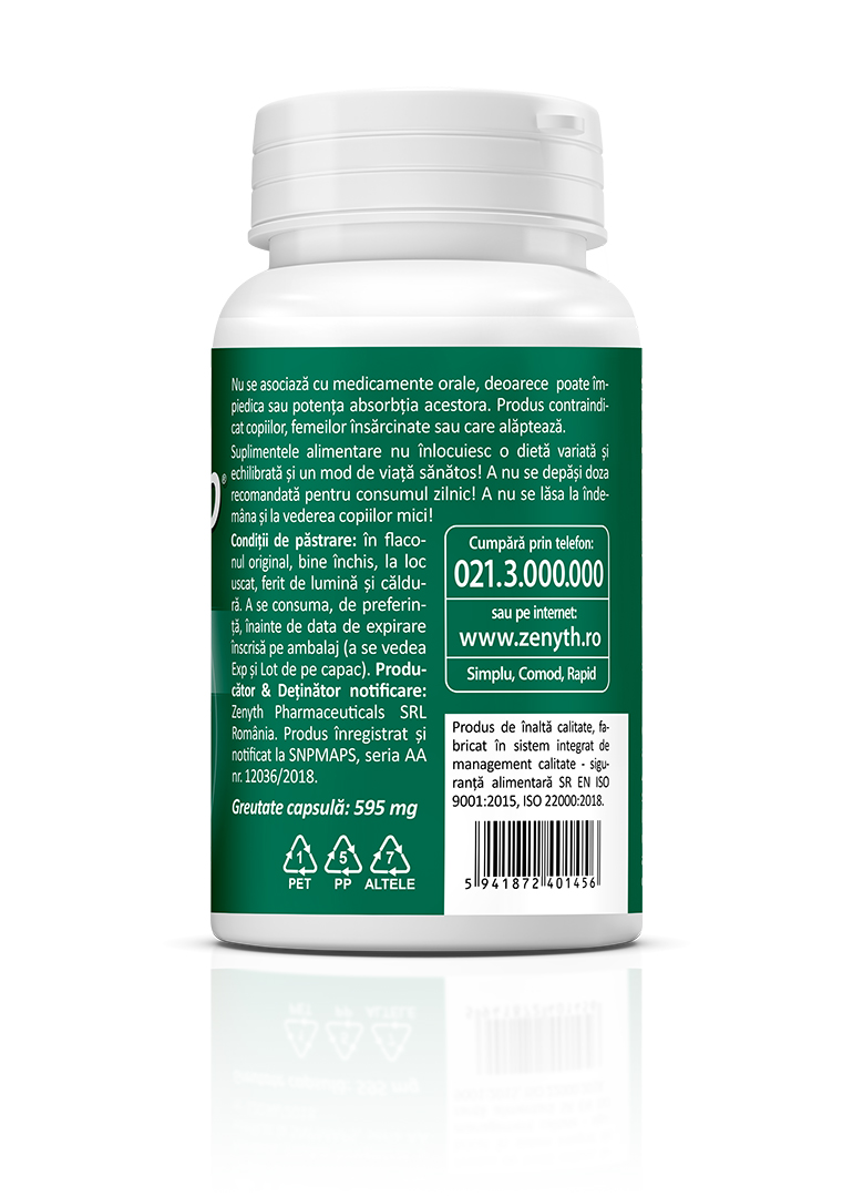 Producător/ Deținător notificare: Zenyth Pharma­ceuticals SRL, loc. Alexandru cel Bun, jud. Neamț, România, tel.: 0233.222.203. Produs înregistrat și notificat la SNPMAPS, seria AA, nr. 12036/2018.