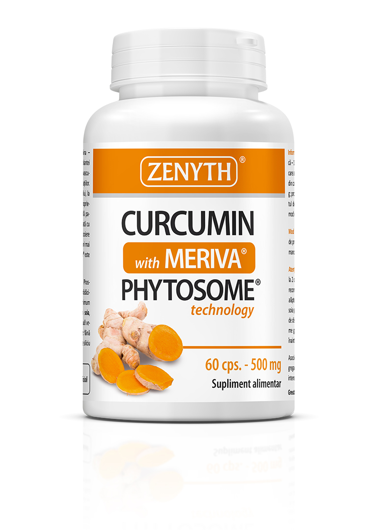 În produsul Curcumin with Meriva®, extractul standardizat din rădăcina de turmeric este asociat cu fosfolipide pentru creșterea absorbției. Meriva® este o formulă patentată, în care curcumina (substanța activă din rădăcina de turmeric) este completată cu fosfolipidele din lecitină. În această asociere, curcumina poate pătrunde mai ușor în celulele și țesuturile din organism, asigurând o biodisponibilitate de 29 de ori mai mare decât a extractului obișnuit de curcumină. Meriva® este marcă înregistrată Indena S.p.A. Italy.
