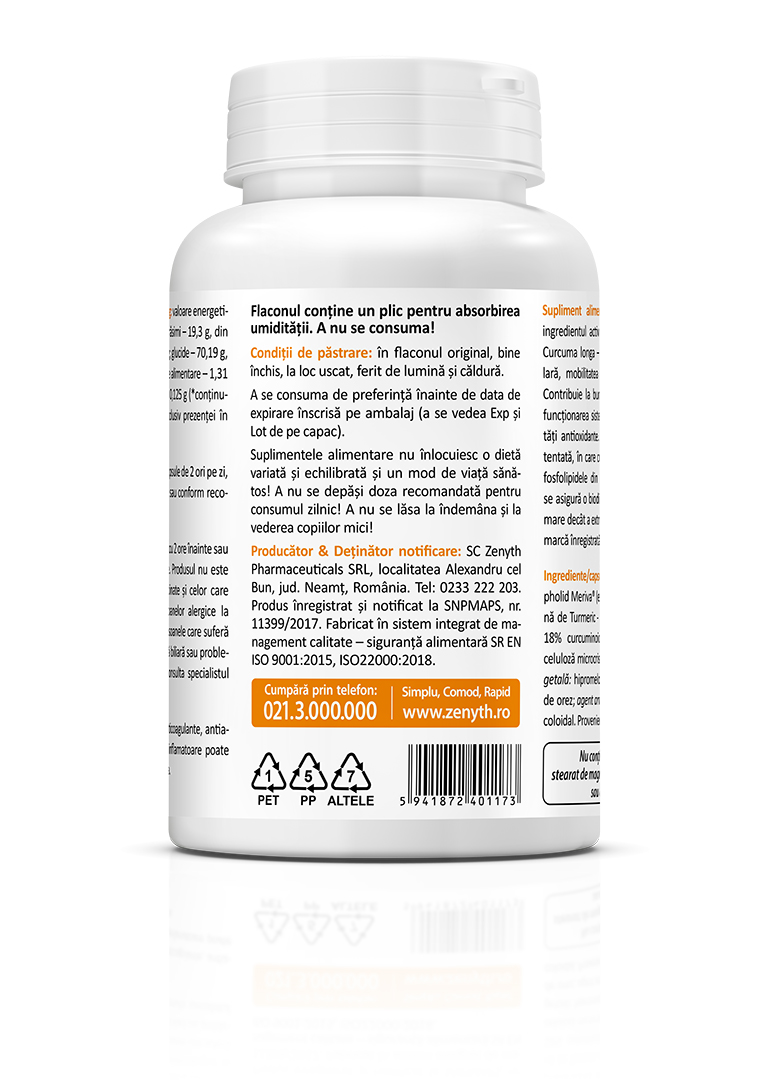 Producător/Deținător notificare: Zenyth Pharmaceuticals SRL, loc. Alexandru cel Bun, jud. Neamț, România, tel. 0233.222.203. Produs înregistrat și notificat la SNPMAPS, nr. 11399/2017.
