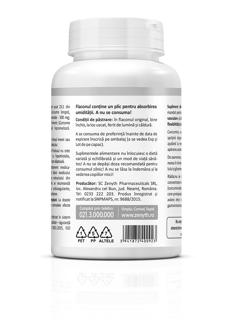 Varianta de Curcumin simplu este potrivită pentru utilizare pe termen lung. În produsul Curcumin, extractul standardizat din rădăcina de turmeric este asociat cu pulberea integrală de turmeric pentru o bună absorbție. Puteți găsi și varianta cu piperină aici: https://zenyth.ro/produs/curcumin-piperine-60-capsule-x-500-mg/.