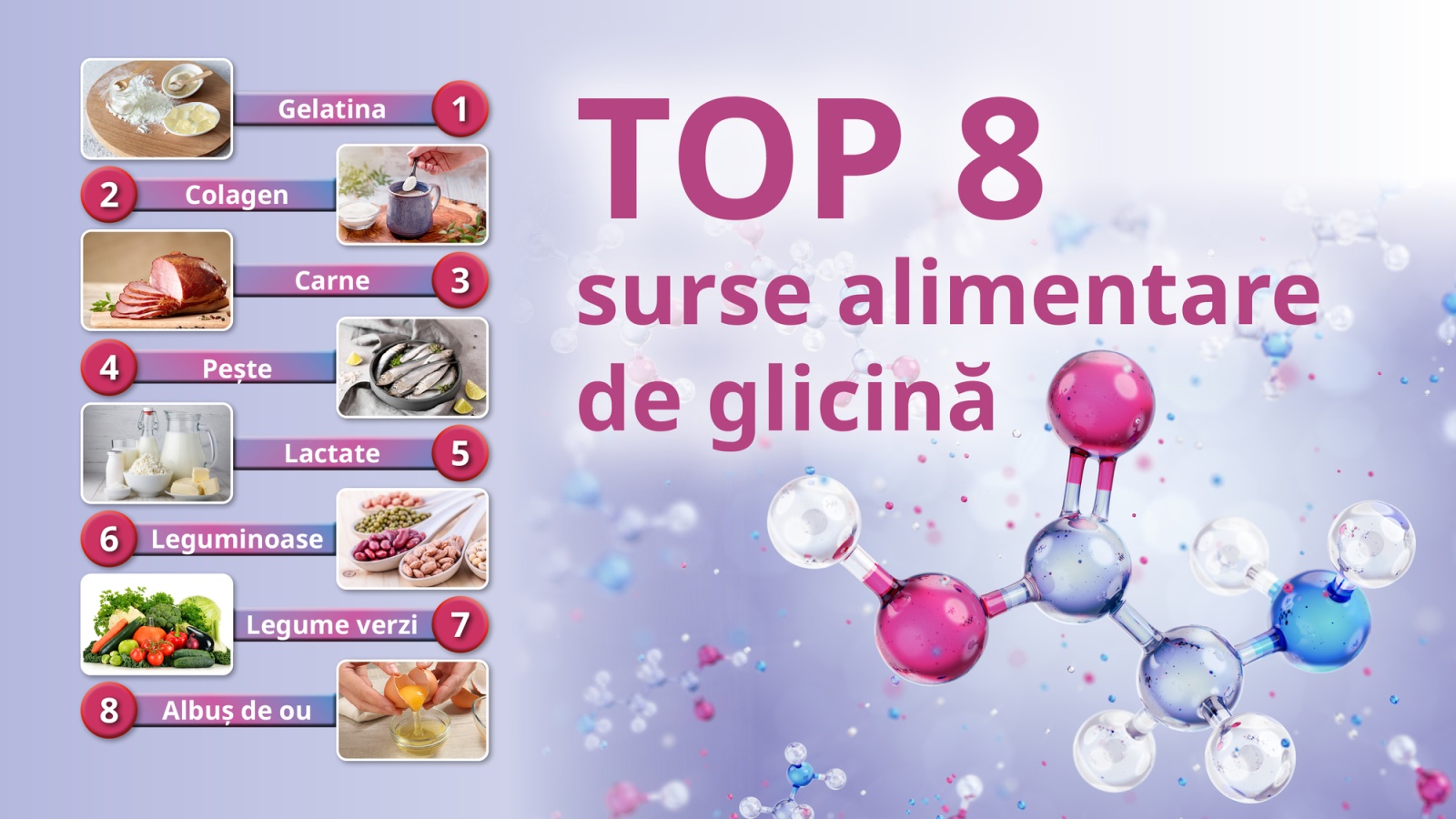 Glicina se distinge prin multiplele beneficii, printre care sprijinirea creșterii musculare, vindecarea mucoasei gastro-intestinale și încetinirea pierderii cartilajului în articulații și piele. Deși se găsește în alimentele bogate în proteine, sursele optime, precum colagenul și gelatina, pot fi dificil de obținut. Acestea provin din părți ale animalelor adesea neglijate, cum ar fi pielea, oasele și țesutul conjunctiv.