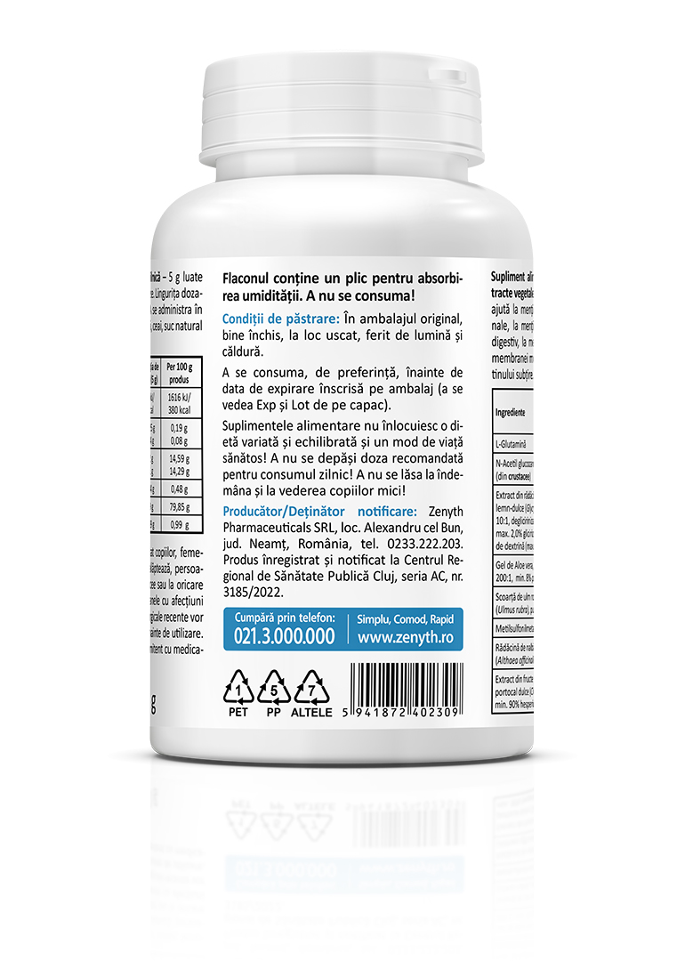 | L-Glutamină | 3000 mg | 60 g |