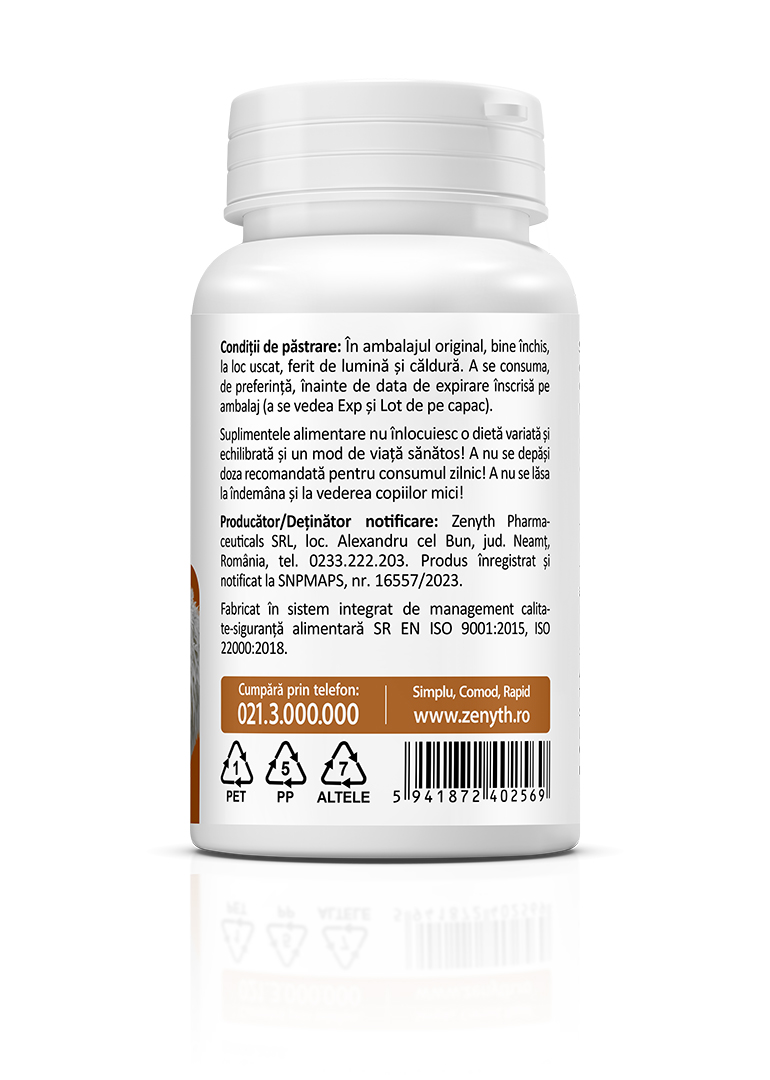 Producător/Deținător notificare: Zenyth Pharmaceuticals SRL, loc. Alexandru cel Bun, jud. Neamț, România, tel. 0233.222.203. Notificare la SNPMAPS nr. 16557/2023.
