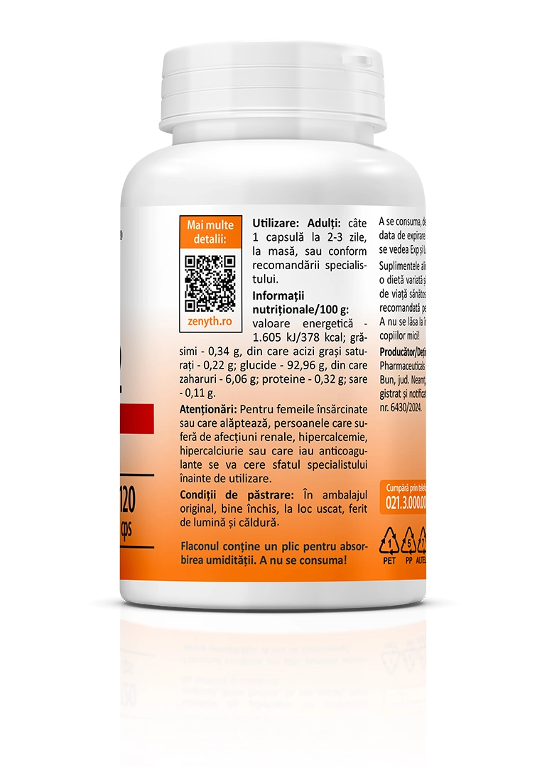 Producator/Detinator notificare: Zenyth Pharmaceuticals SRL, loc. Alexandru cel Bun, jud. Neamt, Romania, tel. 0233.222.203. Notificare la Ministerul Sănătății, nr. 6430/2024.