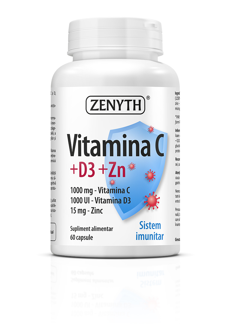 Vitamina C +D3 +Zn este un supliment alimentar recomandat pentru susținerea imunității în infecțiile virale respiratorii. Vitamina C, vitamina D3 și zincul acționează sinergic pentru creșterea rezistenței organismului la infecțiile de tract respirator superior.